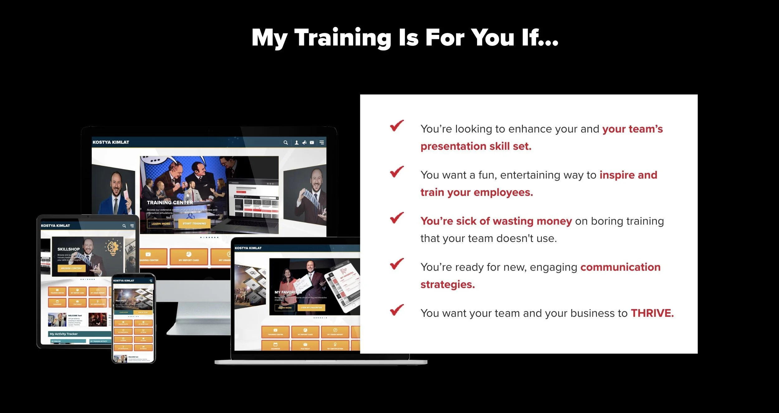 Packed with applicable ideas, this course collects all of the powerful ideas from Kostya’s signature business workshop and allows Kostya to train each of your employees 1-on-1 at their pace.